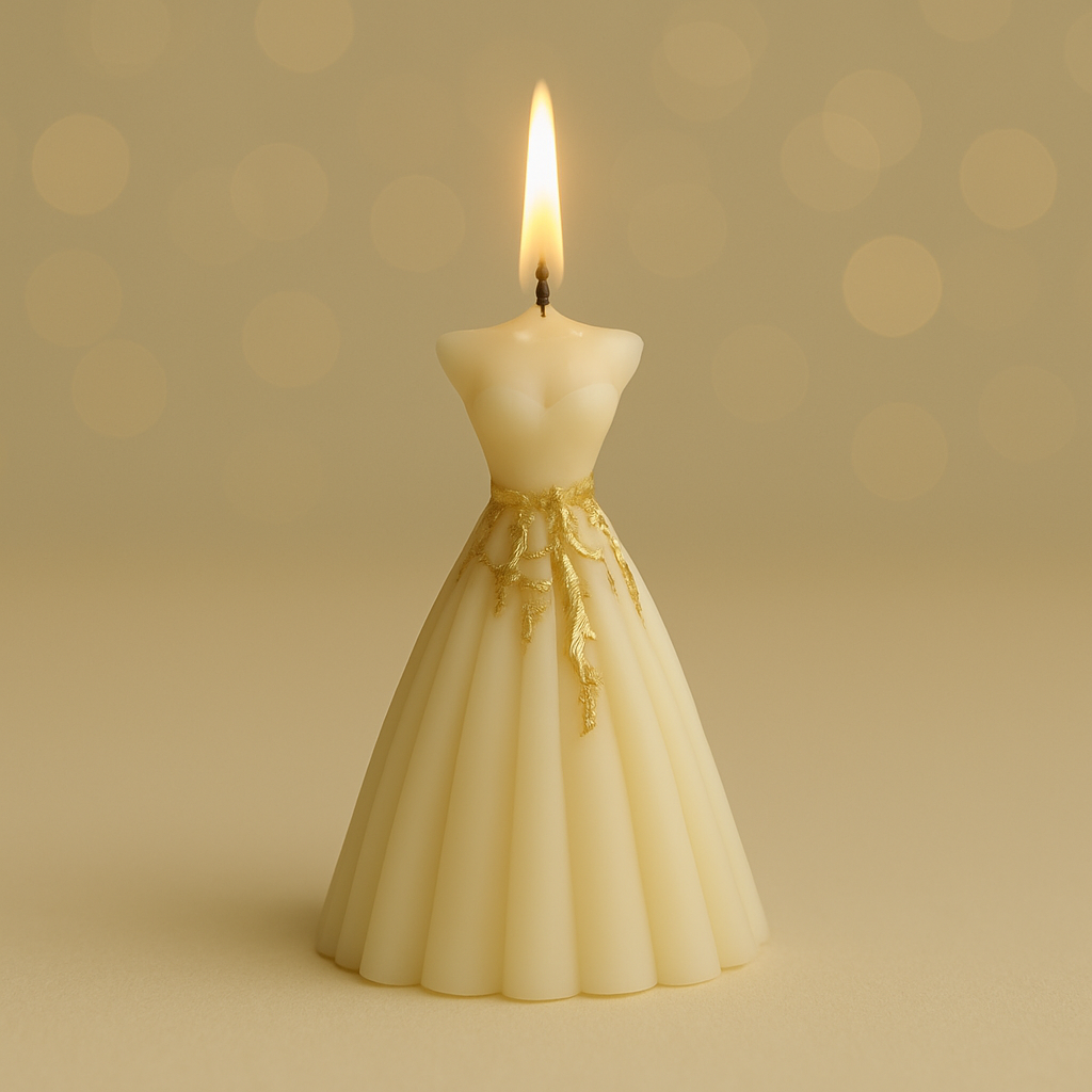 Laissez-vous séduire par l'élégance intemporelle de notre bougie Robe. Sculptée minutieusement en forme de robe de bal, cette bougie unique apporte une touche de raffinement et de lumière douce à votre décoration. Avec ses accents dorés subtils et sa texture délicate, elle transforme chaque instant en un moment magique.